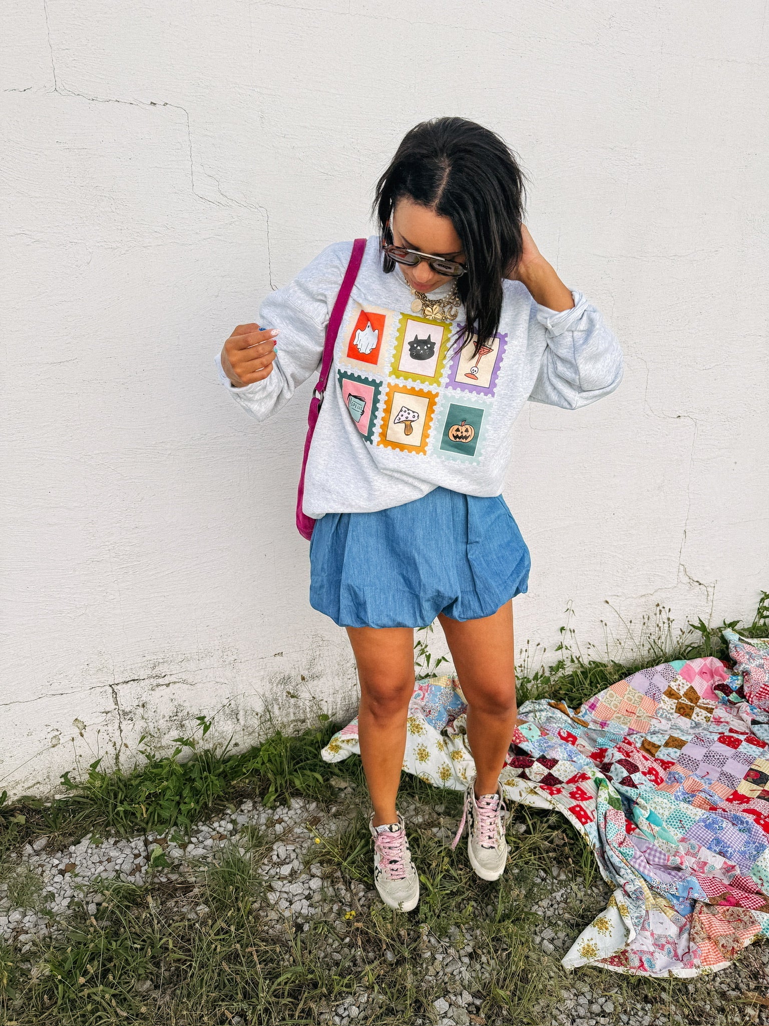 it’s the kind of shirt you’ll throw on with denim shorts, biker shorts, or layered under a flannel. Perfect for everyday wear, lounging, or styling oversized with leggings.