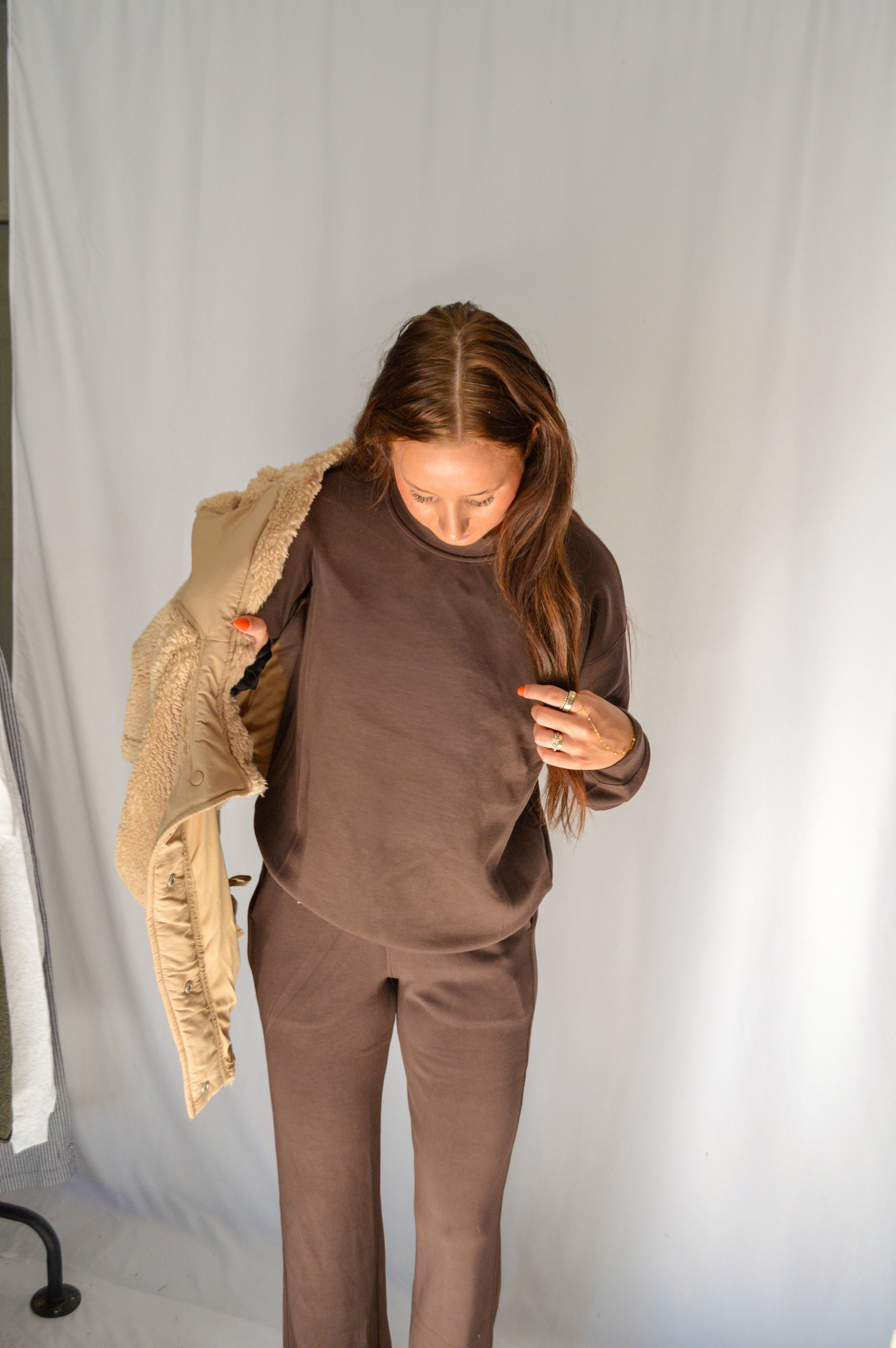Perfect for cozy moments at home, coffee runs, or casual nights out — it’s versatile enough to go wherever your day takes you. Relaxed, breathable, and effortlessly chic, it’s the piece you’ll want to live in.