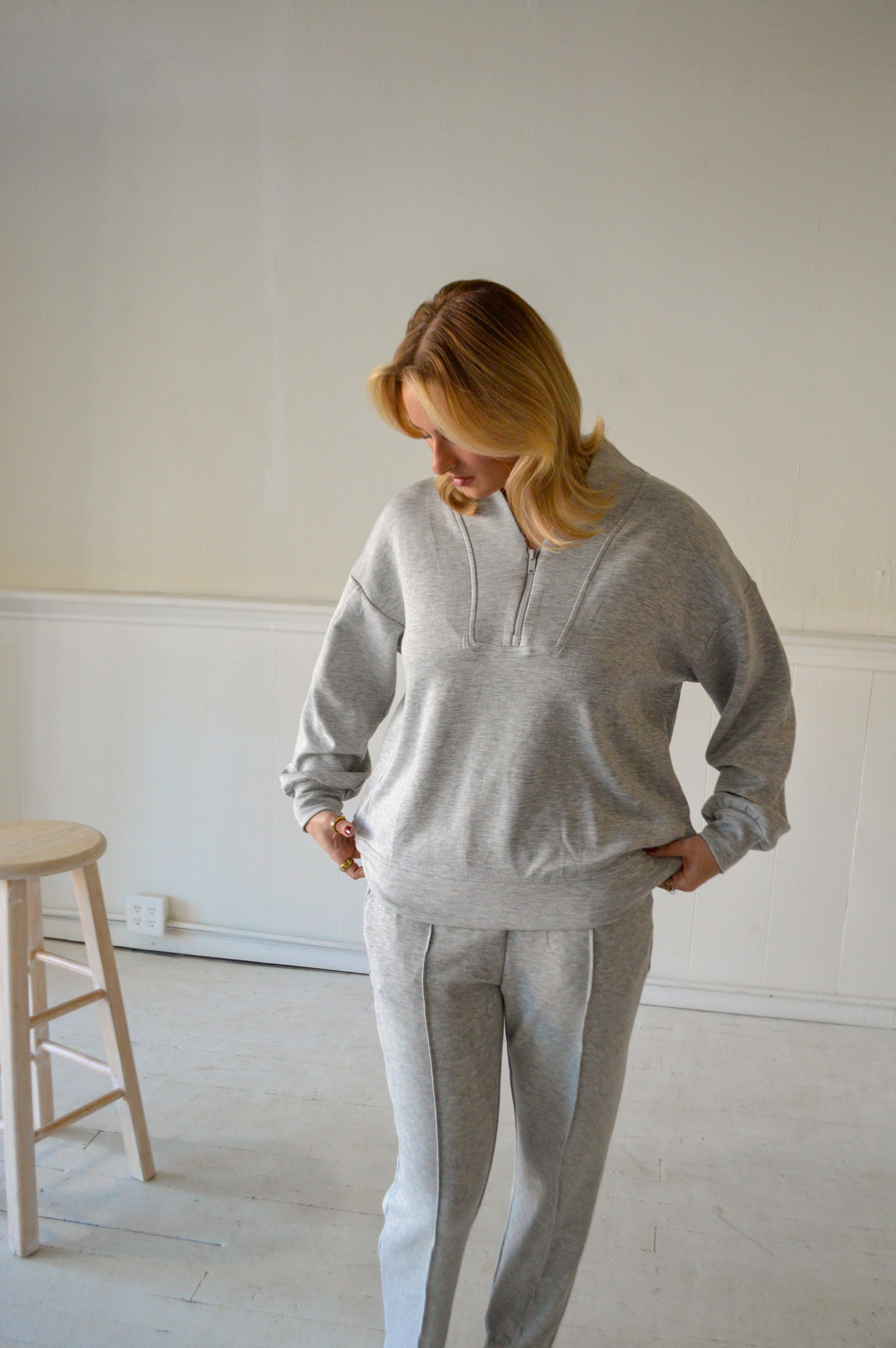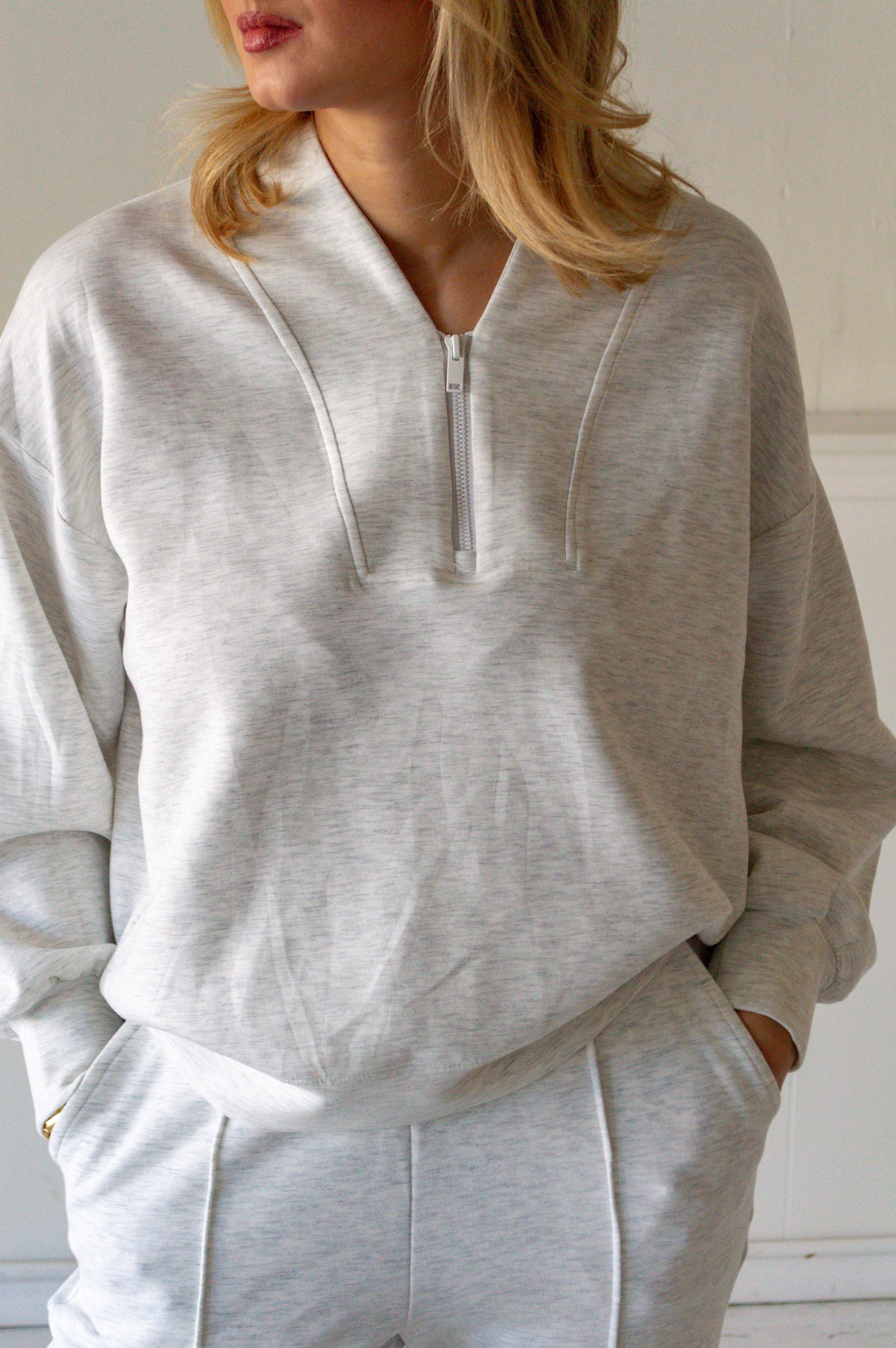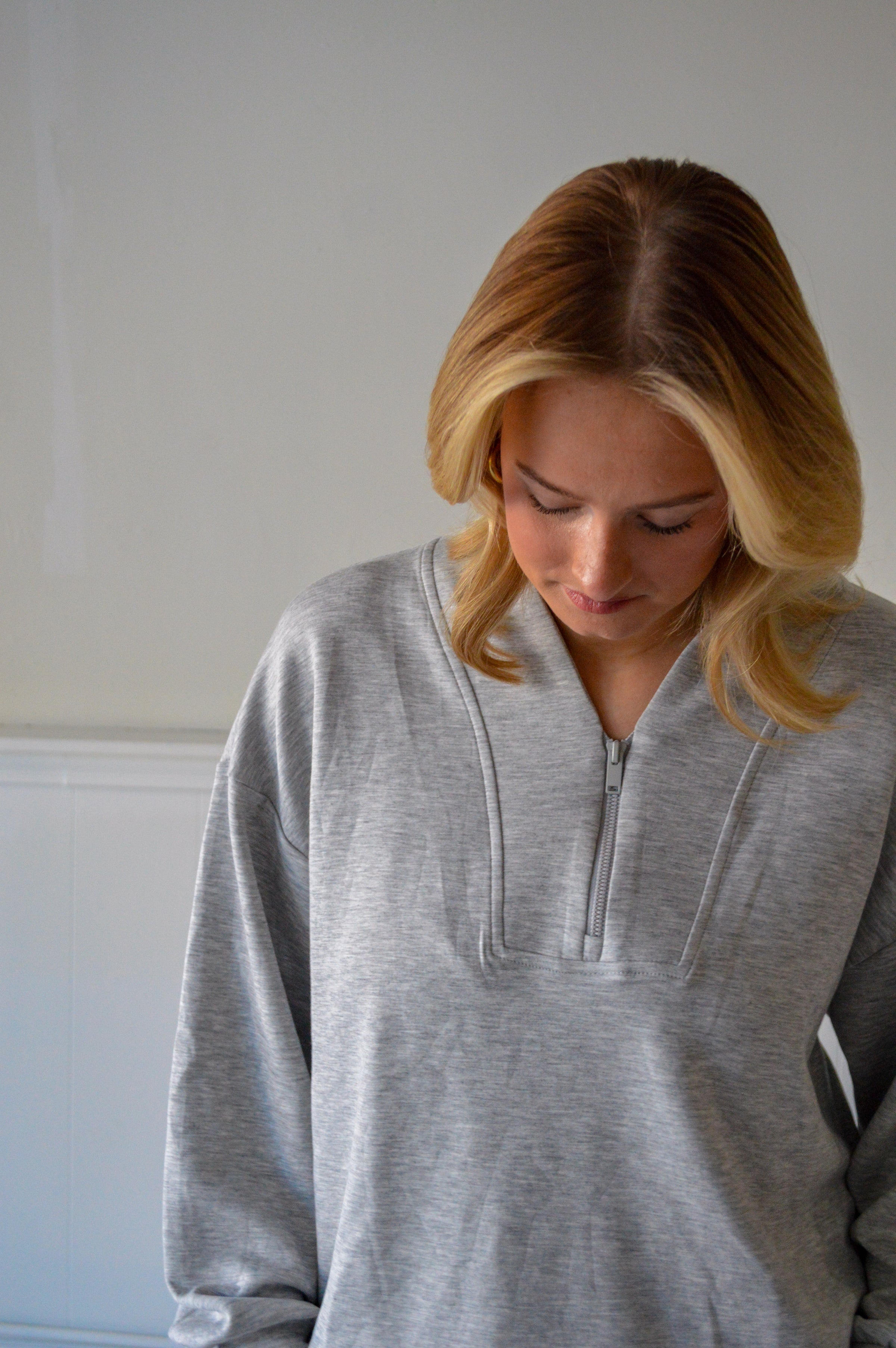 This lightweight pullover features a relaxed, oversized fit with a panelled V-neckline, quarter zipper closure, dropped shoulders, and bubbled sleeves for an elevated, laid-back look. Designed with a front pocket and ultra-soft feel, it’s perfect for lounging, travel days, casual errands, or styled up with matching pants for a polished set moment. Comfortable, trendy, and easy to wear — this jacket is the definition of effortless chic.